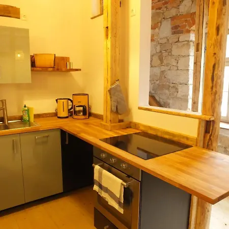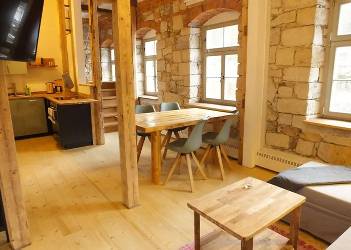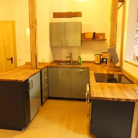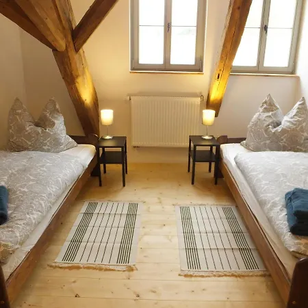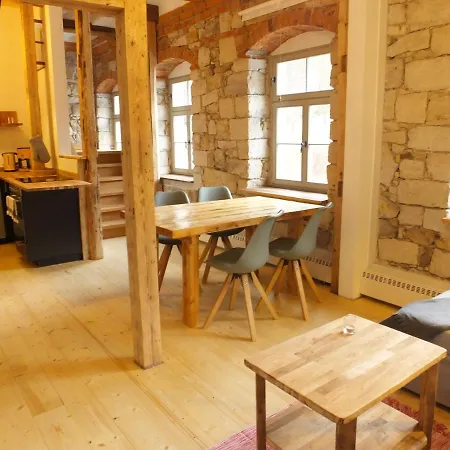 "Kutscherstube" - Hammergut Neidberg Lejlighed ferielejlighed har udsigt over floden og ligger 10 km fra National Park Center Saxon Switzerland. Denne 2 værelses indkvartering kan rumme op til 4 gæster.